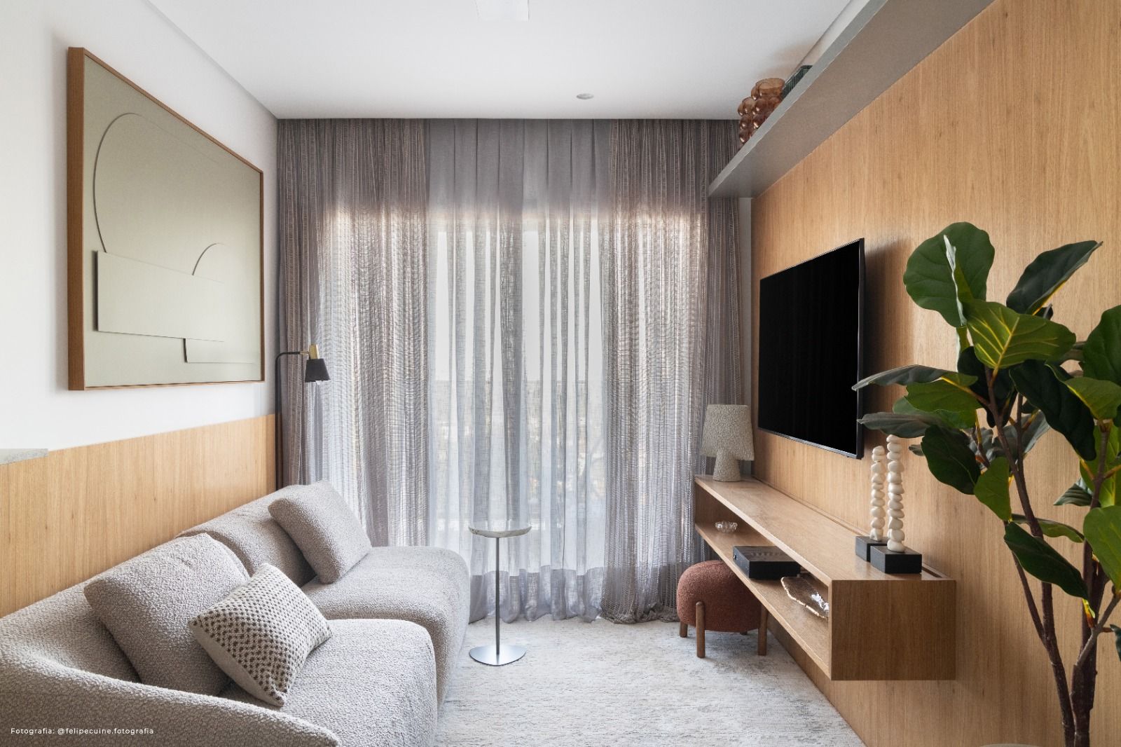 Ela pontua que o ambiente intimista traz uma sensação de conforto ao morador. “A nossa ideia foi transformar cada metro quadrado em um cantinho elegante, funcional e acolhedor, trazendo uma sensação de refúgio em um lugar prático para o dia a dia, mas que tenha muito estilo e personalidade”, afirma.
